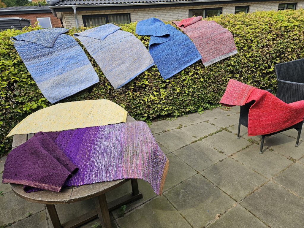 Kludetæpper i diverse farver. Alle er 75 cm brede, og de fleste er 160 cm lange. Den størrelse passer godt i vaskemaskinen. Kan vendes. Vask ved helt op til 95 grader.