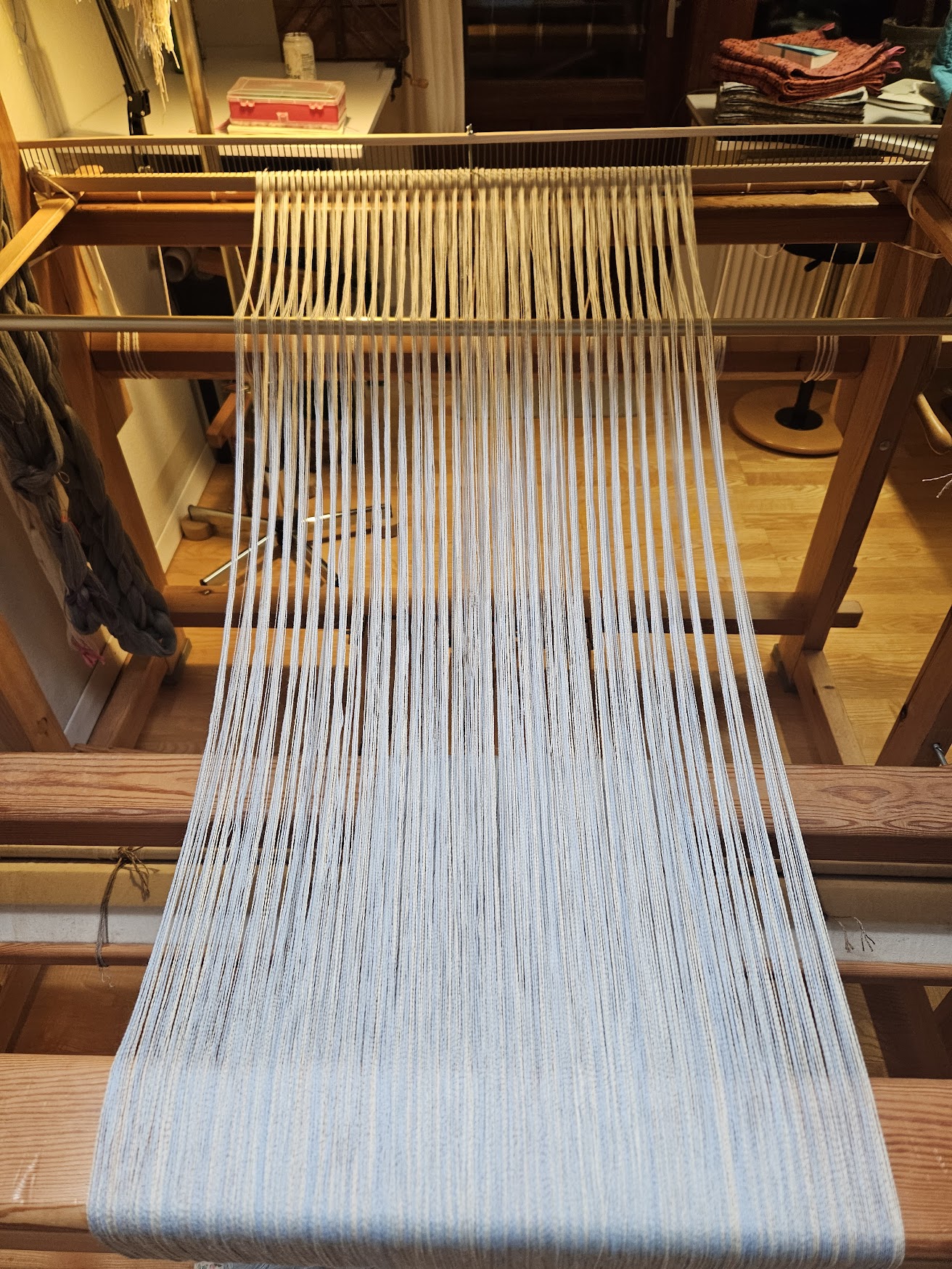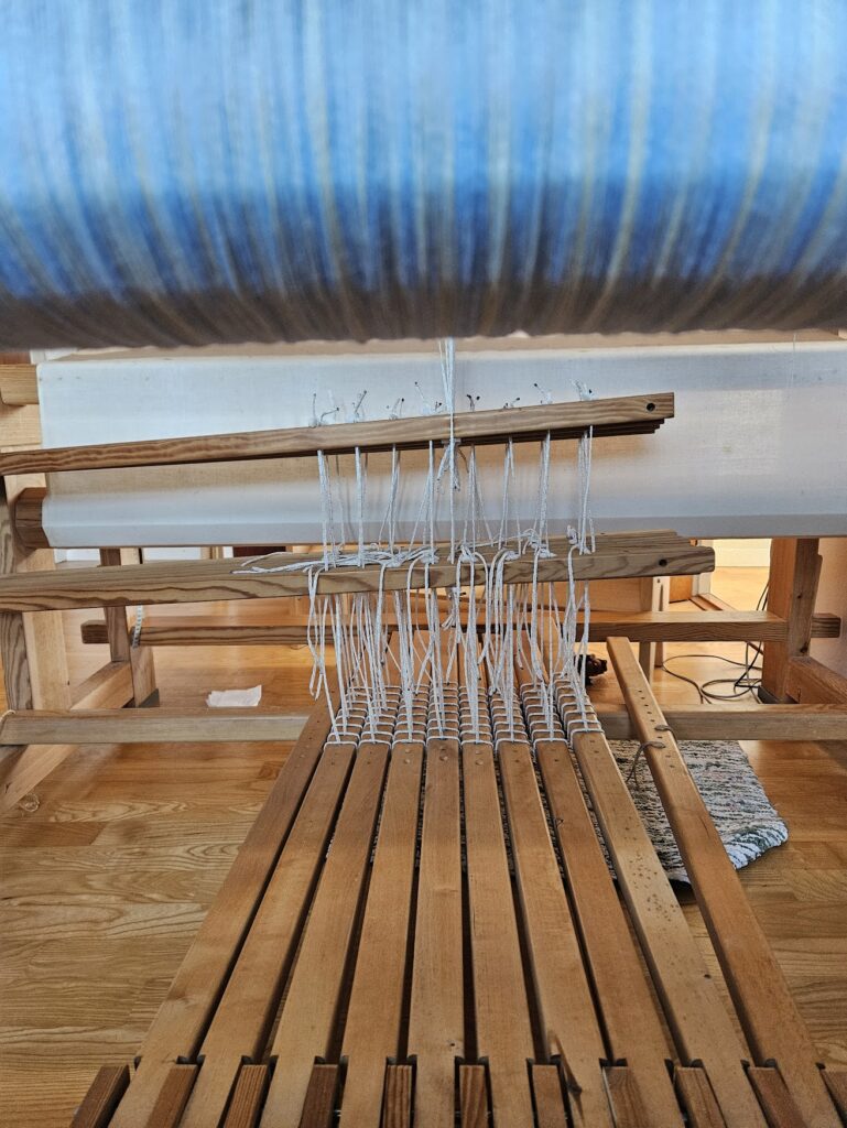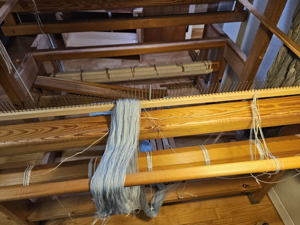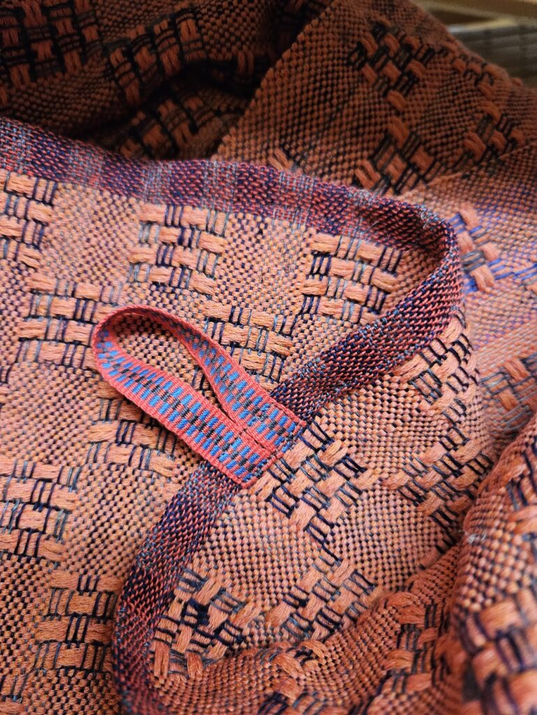 Jeg bliver nødt til at gemme mulige vævemønstre her, for jeg falder somme tider over nogle, der må kunne bruges ved lejlighed. Den til venstre er jo cirkler – og så kun på 4 skafter. Den til højre har jeg døbt Harlekin. Det må kunne bruges til håndklæder.